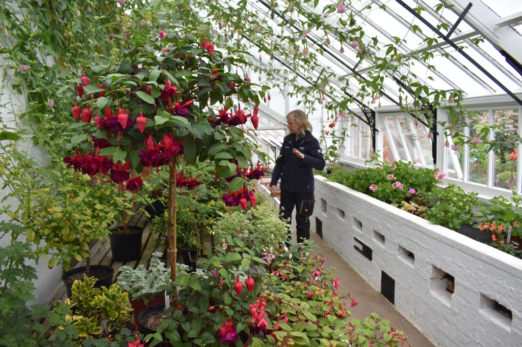 - In the glasshouses James and Joanna are thinking about next year; what to grow? Time to start taking cuttings again. Pelargoniums cuttings in the glasshouse taken last September will be ready for the showhouse next year. Joanna says the fuchsias are tricky to look after.