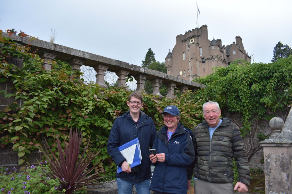 Another exciting and important development is in full swing just now. I quote from the website: ‘Plant Listing at the National Trust for Scotland (PLANTS) is the biggest horticultural audit project taken by the Trust and aims to celebrate, protect and better understand the flora and vegetation of our gardens and designed landscapes’. Whilst catching up with Rose Garden developments I was able to meet with some of the team working at Crathes: Dr Colin McDowall is Project Manager of the overall PLANTS project and Philippa Holdsworth is Team Manager for the North Region, which covers Aberdeenshire, Angus, the Highlands and Moray. Valeria Soddu and Niki Douglas complete the North team. The mind boggles rather at the thought of doing an inventory on 13 gardens; Crathes is a huge undertaking in itself. This project is led nationally by curator Anna Florence. This project means that Dave and I, who have been puzzling over Hoheria species and other problems will reap great benefits, both as the project progresses and when the results are officially available. You can see more about this project by visiting the NTS website. It also featured on ‘Beechgrove’ episode 20, filmed at Crathes for BBC Scotland and available on I Player.