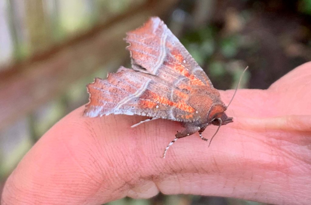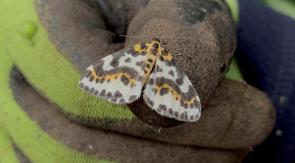 Emily has sent me some photos of moths she has seen in the garden – thanks Emily. The silver Y is a common day flying moth attracted to lavender and other sun loving herbs; the magpie will lay it eggs on gooseberries so gardeners beware. I am rather taken with the herald which is new for me.