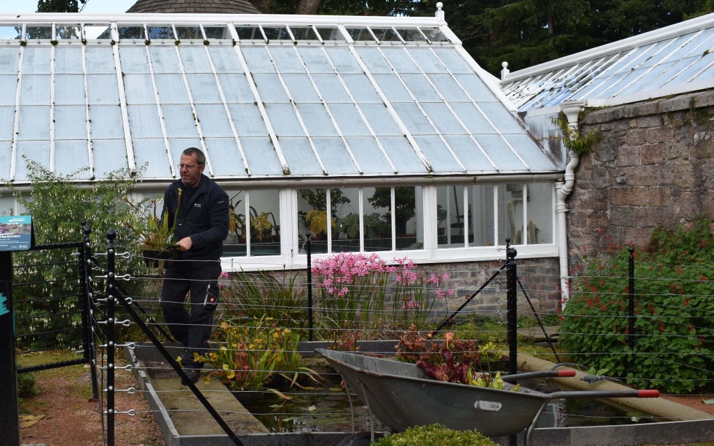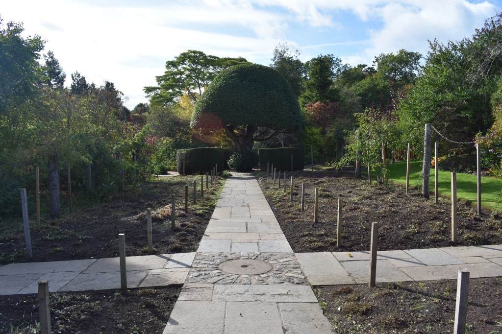 Emily, our apprentice, has now been here about a year. Fortunately Covid did not make too much impact on the year, although some of her college days were rescheduled. She spends one day a week in the glasshouses. It’s always a balance between learning new skills and helping where the work of the garden is most needed. This month she has been with Steve making up soil mixes for trees and shrubs and for the glasshouse pots. These mixtures are kept in bays next to the potting shed. A lot of riddling was involved. She has also spent some time tidying up the vinery with Joanna and trying to rid the glasshouse hoya plant of the mealy bug. These bugs are aphids which secrete honeydew which attracts sooty mould. Emily has been using a toothbrush to remove the bugs from all the plant nooks and crannies where they protect themselves with a white cottony looking cover. She finds this job quite satisfying. Outside she has been with Andy learning about keeping the yew pillars in trim in the Golden Garden and getting practice with the mower. Some jobs, like clearing the north border in the Upper Pool are repeats from last year, but this is an opportunity for consolidation of learnt practices. The garden really benefits from all Emily’s hard work and in return Emily gets excellent training and the opportunity to learn about caring for the Crathes garden with its great diversity of plants.