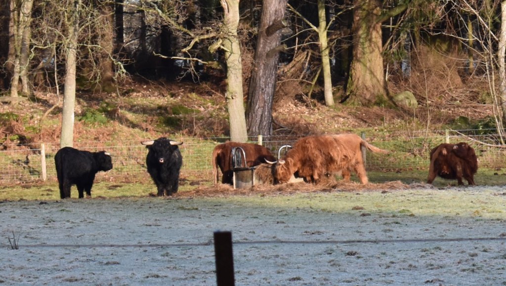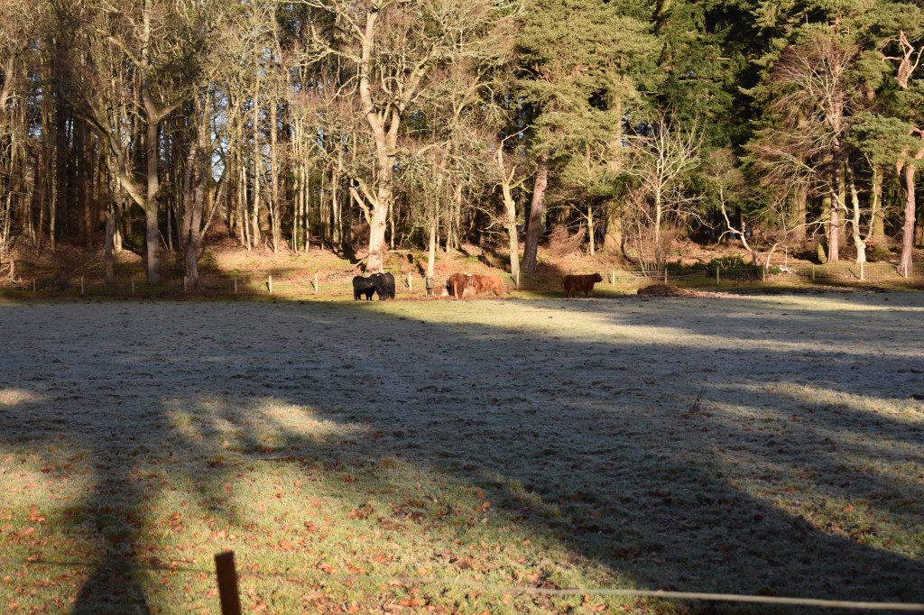 It was a bonny cold January day as I walked up the Crathes drive. A white frost lay across the fields, but the highland cattle are hardy beasts with thick coats well able to cope with the cold.