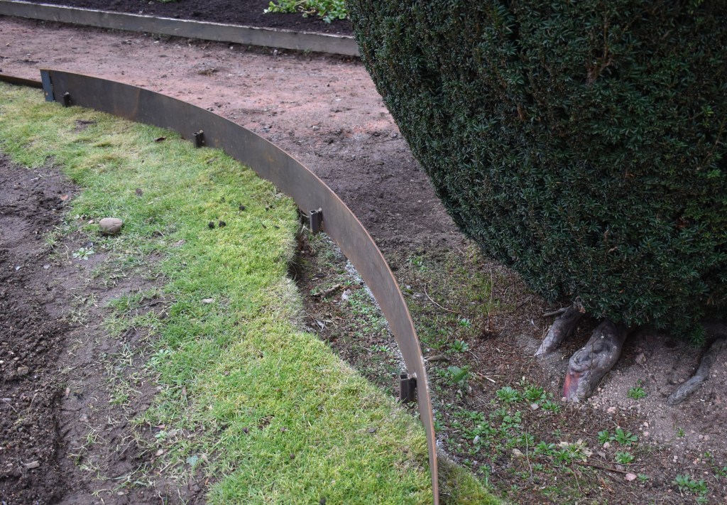 In the Rose Garden the gardeners have been working hard placing the outer edges – made by a local blacksmith. There is still some work to be done on the paths. The central sculpture is to be lifted into the garden by crane sometime in March. The rabbits will not eat the roses, but much of the planting will have to wait until the rabbits are gone.