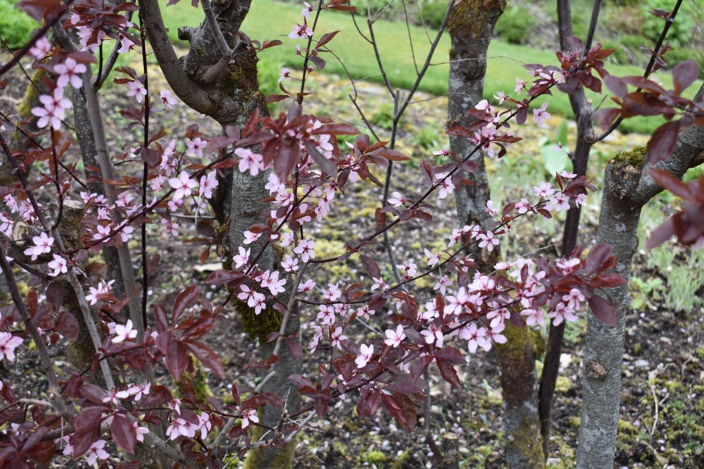 Andy has been trying to finish the pruning. Some shrubs will have to be left until next year. The Prunus pisardii ‘Nigra’ hedge which defines the White Border used to be pruned every year, but now it is deliberately left and pruned every other year. I think it looks better for the rest. It is a very old hedge with some plants dead or dying; eventually it will need to be replaced.