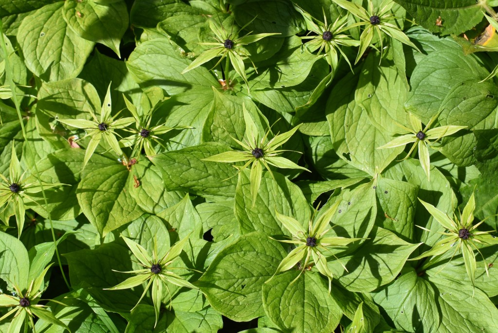 Another unusual native plant that grows in the garden is herb Paris, Paris quadrifolia. I am not sure if it is the native that grows in the garden, but I have seen it growing wild in Perthshire.
