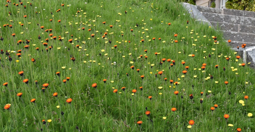 The meadow by the castle was looking great with orange and yellow hawkweeds, but unfortunately had to be cut before the flowers seeded because they were just above the croquet lawn. The self-seeded foxgloves by the viewpoint are looking majestic.