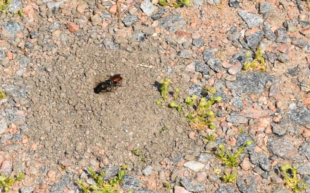 That’s how I came on what I think is a ruby-tailed wasp or a close relative. I had been reading about these wasps in Dave Goulson’s book The Garden Jungle. To be precise, I was re-reading the book; I am rather a fan of Professor Goulson who is an entomologist currently employed at Sussex University. His books championing insects are very readable and always impress on me the complexity of the ecosystems of which we are part. The ruby-tailed wasp is a cuckoo wasp – it lays its eggs (one egg to one bee grub) in the nests of mason bees. Once the bee larva has grown fat with pollen the wasp egg hatches and feasts on the bee larva. You may think ruby-tailed wasps are of no importance in the ‘scheme of things’, but ecosystems always remind me of the game of pick-up-sticks, where removal of one stick that is so intertwined with other sticks has unforeseen consequences. Since we don’t know the importance of the ruby-tailed wasp or the complexity of ‘the scheme of things’ we should celebrate the presence of this tiny insect.