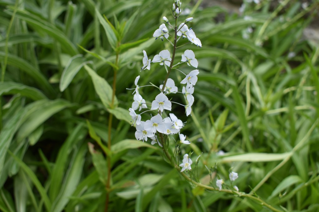 In the walled garden I find Veronica gentianiodes ‘Pallida’, which is a cultivar of a native of the Middle East and easily distinguished as a speedwell with a flower shape very similar to our germander native.