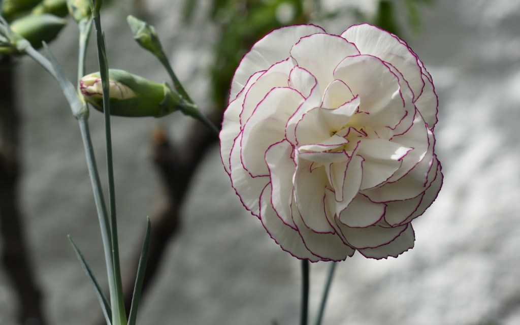 Joanna has been given some carnations to care for. The white one with pink edges gives her the most pleasure. It has that delicate clove scent I associate with childhood. For as long as I can remember I have loved flowers and gardens. Such a pleasure.
