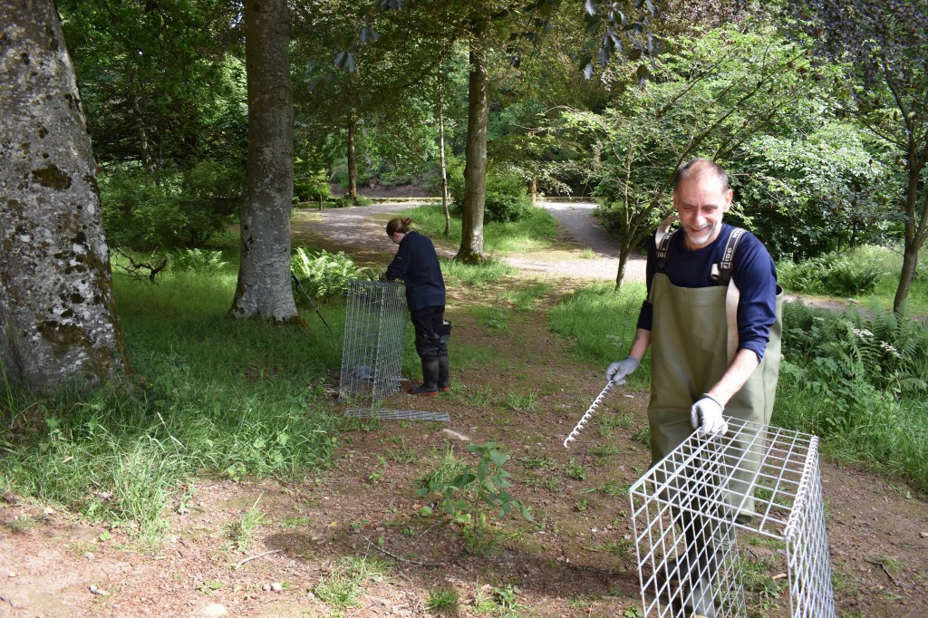 Work on removing the sediment from the Millpond has begun. It’s important to prevent extra sediment escaping into the Dee. A three-fold approach is devised with ‘silk curtains’, fibre mats and gabion baskets filled with stones and straw to trap the escaping sediment. The bulk of the sediment will be used by the gardeners. James is very happy about this source of natural nutrient-rich silt for the walled garden.