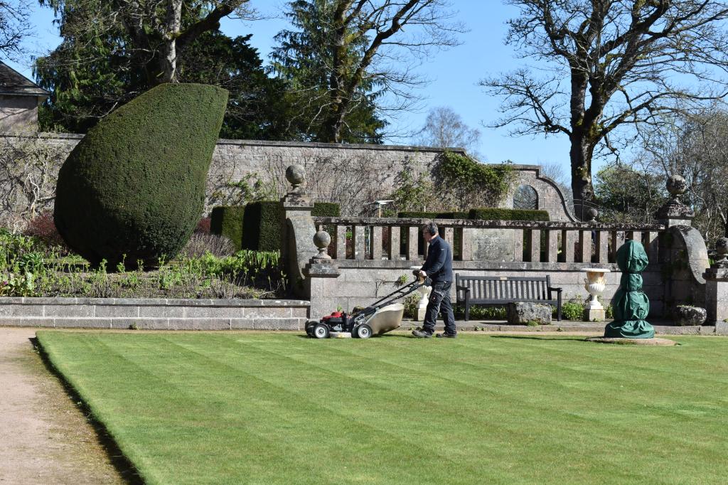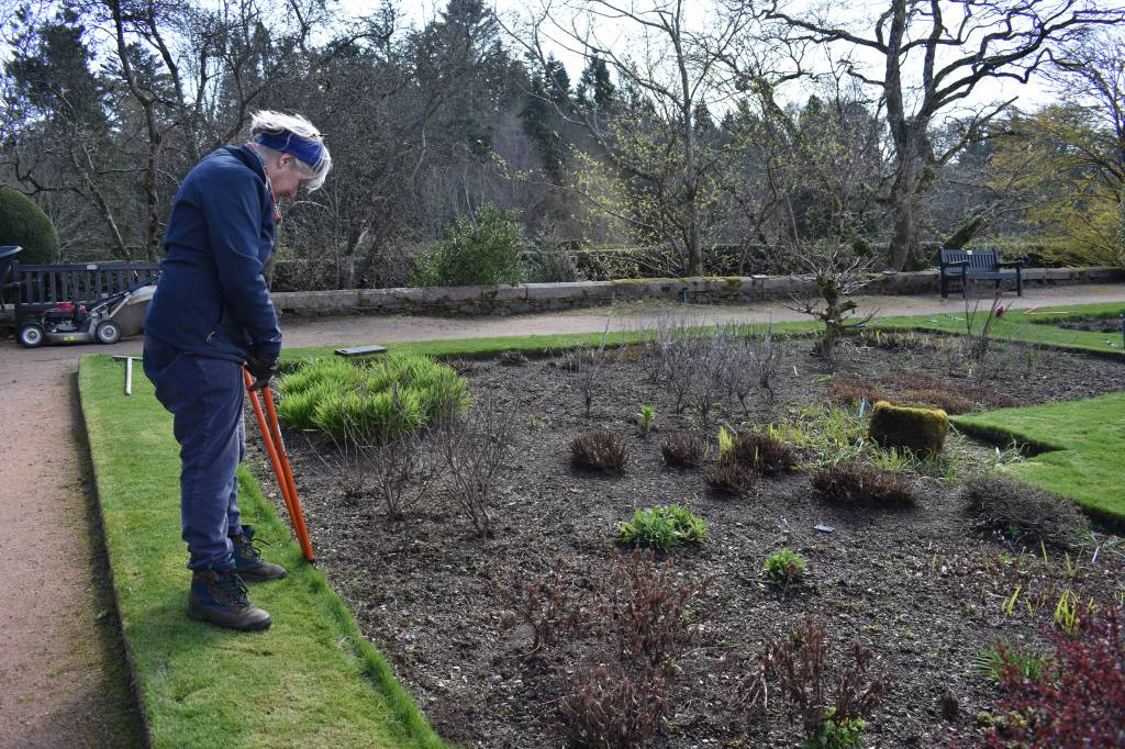 But there is much to learn from other sources too: James is expecting to learn something when people from Scotland’s Yew Tree Heritage Initiative visit this week to measure our ancient yews; Joanna is hoping to go to Logan Gardens on the Rhins of Galloway (Royal Botanic Garden Edinburgh) in September to learn something from glasshouse practice there; Mike is planning to visit some gardens on the west coast when he is on holiday in the summer. He is especially interested in herbaceous plants. Since this is part of his professional development he will get some time off in lieu. Specialist courses are also available – James has been on a tree surgeon course, and hopes to go on a lime mortar course to help him deal with the old walls at Crathes. Steve, Mike, Emily and Kevin were on a first aid course last week that emphasised the proper response to chain saw accidents. Much of training goes along with day-to-day practice. James tries to give everyone some experience of the main garden activities such as cutting the grass and hedge trimming. The volunteers who give so many dedicated hours to the garden also learn on the job – the diversity of plants at Crathes provides everyone with good experience.