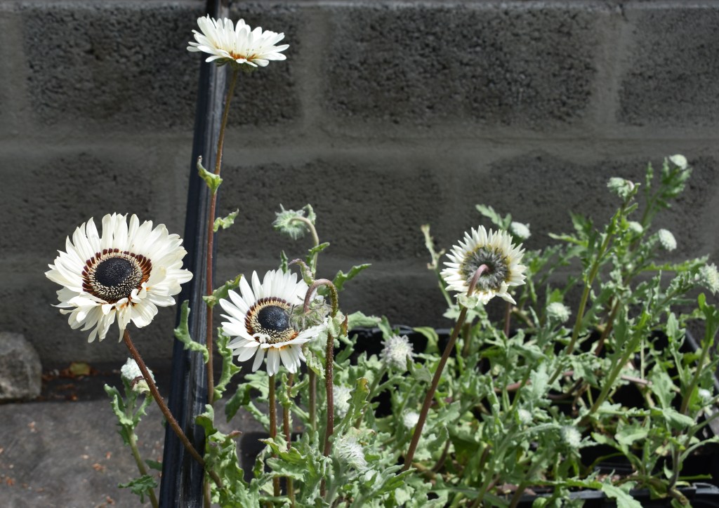 Arctosis fastuosa ‘White’ is in flower in the garden frames. Joanna grew this from seed but thinks she sowed it too early as the plants have grown rather leggy. Some have been planted out, but she plans to try these attractive flowers again next year.