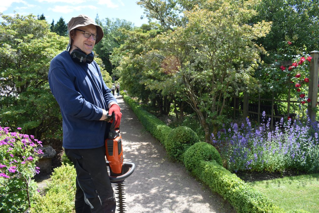 A garden can be a refuge, maybe from the news, from Covid, from personal problems, but, surely, it should also be of the world. Today we cannot ignore the plight of the Climate Crisis and if we own a garden it is in our power to help. To this end the NTS launched its Plan for Nature on 28 May 2024 as part of the Trust’s action in its own properties to mitigate the Climate Crisis (NTS owns about 180,000 acres of Scotland). Important conservation work has been going on for many years with emphasis on properties like Ben Lawers and Mar Lodge, but this plan also recognises the importance of work in all NTS properties at all levels of concern. Decisions such as that to move away from commercial forestry plantations in order to increase biodiversity directly affect Crathes. Working in Partnership with other organisations is also important as in the Millpond project which works to help conserve the Dee salmon. Control of invasive plants, and the role of education enabling youngsters and adults alike to enjoy and understand the complexities of our natural world are other areas where Crathes has an ongoing role to play. The plan is launched this year, but there is no fixed endpoint. ‘It can take decades to restore a species-rich meadow, a century to regenerate native woodland and 300 years to grow an ancient tree’ says Jeff Waddell, NTS head of nature conservation. The meadows up by the viewpoint show the march of time in no uncertain way. Where these meadows flourish, insects abound, where insects abound there are birds. The house martins returning from Africa will benefit as will swallows, many other birds, lizards, shrews and many more creatures. Centuries ago this was the natural rhythm of life, a rhythm which we have almost destroyed; there is time still to make a difference. Sometimes the march of time is circular. The decision to reduce pesticides and herbicides to a minimum may be the most important decision James makes during his time as head gardener.