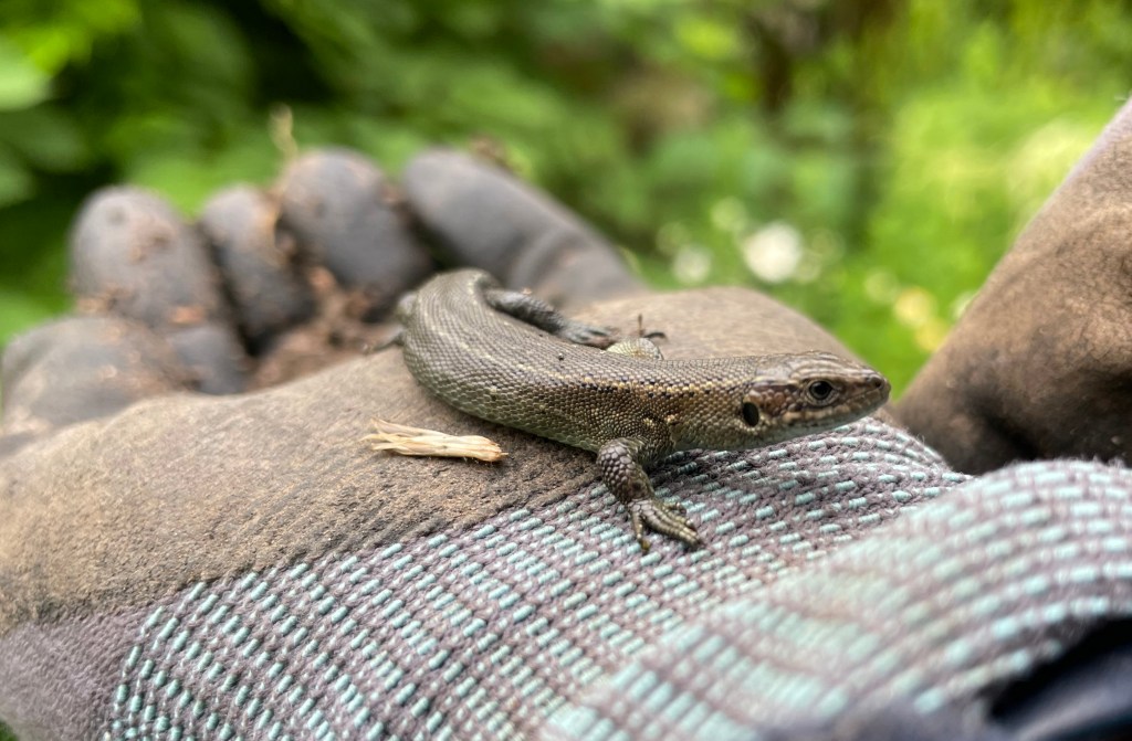 The common lizard found by Emily in the garden and photographed by Joanna; lizards have also been found by the viewpoint, 30 June 2023. Joanna Shaw.